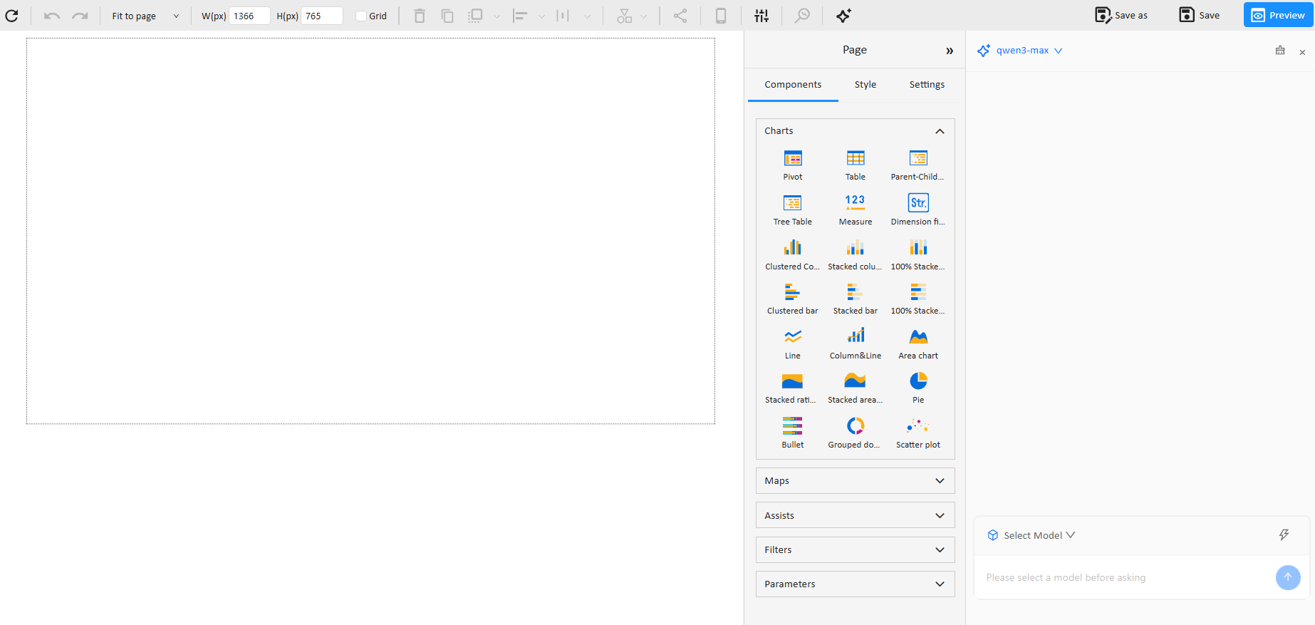 - Check whether the page is associated with a usable model (Dataset/Cube/Model).