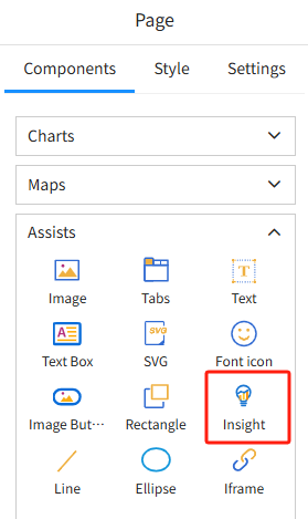 The Insight component enables AI-powered data interpretation within dashboards.