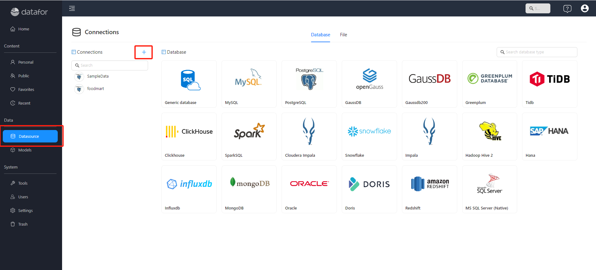mysql8(for MySQL 8 and above). - If the required driver is not listed or needs updating, refer to the [JDBC Driver Management] documentation to ensure the correct driver files are loaded in Datafor.
