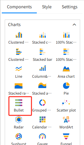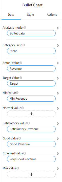 Bullet charts support binding multiple fields from the data model.
