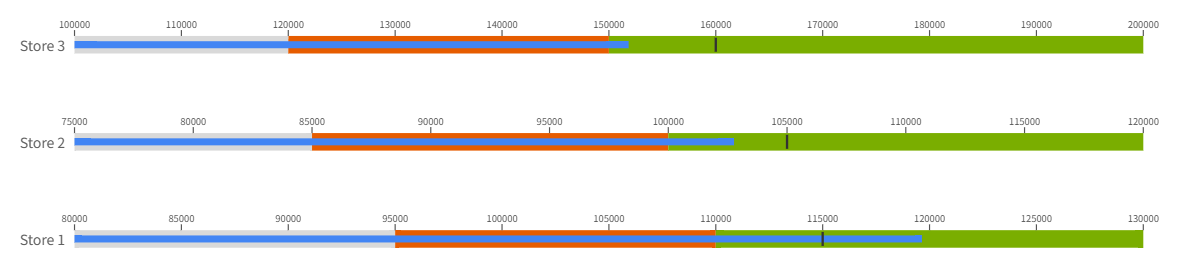 Used to generate multiple bullet charts (e.g., Store 1, Store 2).